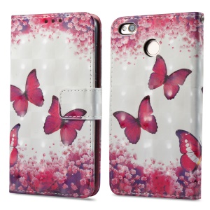 For Xiaomi Redmi 4X 3D Butterfly Series Leather Cover Shell with Stand - Red Butterfly