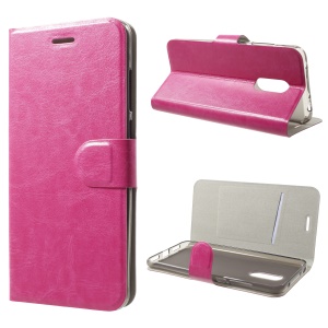 Crazy Horse Card Holder PU Leather Mobile Phone Case for Xiaomi Redmi 5 Plus Built-in Steel Sheet - Rose