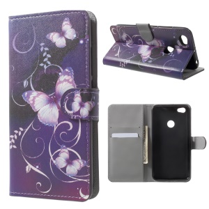 Pattern Printing Leather Wallet Case for Xiaomi Redmi Note 5A Prime / Y1 (India) - Purple Butterflies