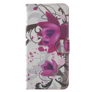 Pattern Printing Wallet Leather Stand Cover for Xiaomi Redmi Note 5A Prime / Y1 (India) - Purple Flowers