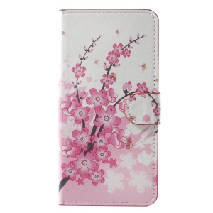 Pattern Printing Magnetic Leather Stand Case for Xiaomi Redmi Note 5A Prime / Y1 (India) - Plum Blossom