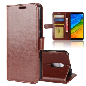 For Xiaomi Redmi 5 Crazy Horse PU Leather Phone Case with Card Holder - Brown