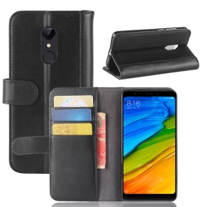 Genuine Split Leather Wallet Stand Case for Xiaomi Redmi 5 Plus - Black