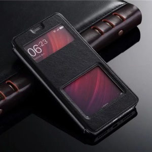 For Xiaomi Redmi Note 4 Dual View Window Table Talk Flip Stand Leather Case - Black