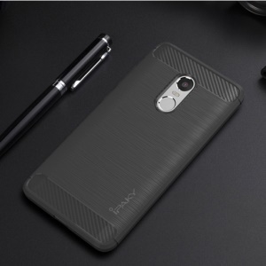 IPAKY Brushed TPU Phone Case for Xiaomi Redmi Note 4 with Carbon Fiber Decorated - Grey