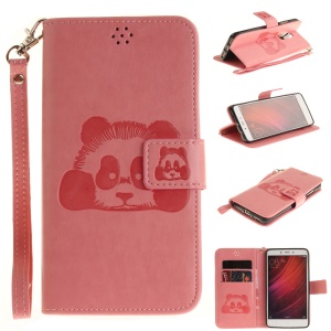 Imprint 3D Effect Panda Leather Cover Case Wallet for Xiaomi Redmi Note 4 - Pink