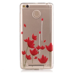 For Xiaomi Redmi 3s Embossing TPU Clear Skin Cover Case - Red Tulip