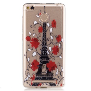 For Xiaomi Redmi 3s Embossed TPU Back Case - Eiffel Tower and Red Flowers