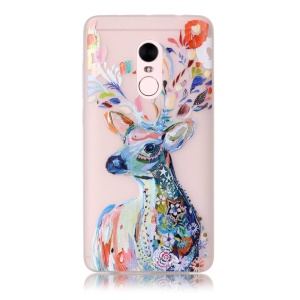 Noctilucent Patterned TPU Cover for Xiaomi Redmi Note 4 - Floral Deer Painting