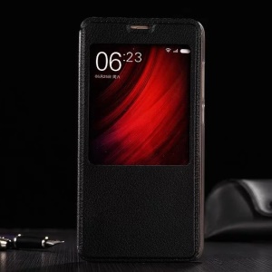 Information View Window Leather Stand Case for Xiaomi Redmi Note 4 - Black