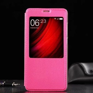 For Xiaomi Redmi Note 4 View Window Information Check Leather Cover Stand - Rose