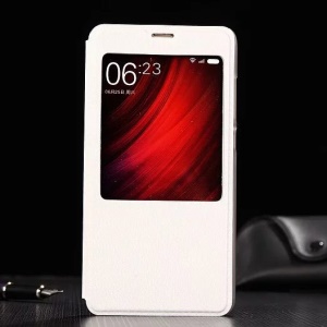 View Window Leather Phone Case with Stand for Xiaomi Redmi Note 4 - White