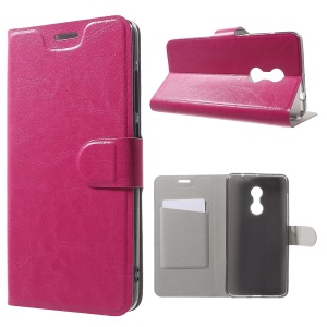 Crazy Horse Card Slot Leather Stand Shell for Xiaomi Redmi Note 4 Built-in Steel Sheet - Rose