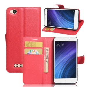 Lychee Skin Leather Card Holder Case for Xiaomi Redmi 4a - Red