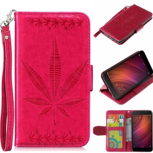 Imprint Maple Leaves Magnetic Leather Wallet Case for Xiaomi Redmi Note 4 - Rose