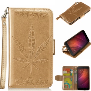 Imprint Maple Leaves Leather Card Holder Case for Xiaomi Redmi Note 4 - Gold