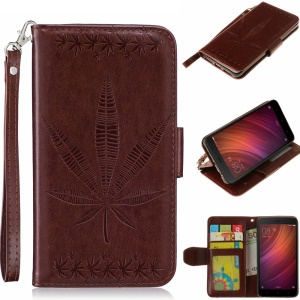 Imprint Maple Leaves Wallet Leather Magnetic Case for Xiaomi Redmi Note 4 - Brown