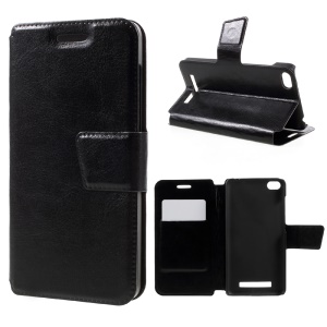 For Xiaomi Redmi 4a Information View Window Leather Case - Black