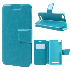 Crazy Horse Flip Leather Cell Phone Case for Xiaomi Redmi 4a Built-in Steel Sheet - Blue