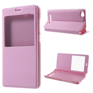 the same price For Xiaomi Redmi 4a View Window Leather Stand Cover - Pink#525483