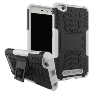 For Xiaomi Redmi 4a Cool Tyre Pattern Kickstand PC + TPU Phone Cover - White