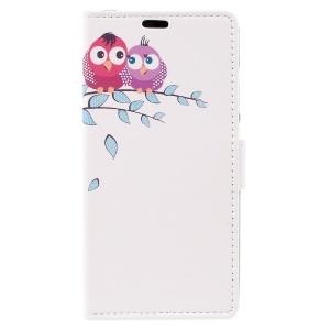 Patterned Leather Wallet Phone Case for Xiaomi Redmi Note 4 - Two Owls on the Branch