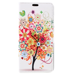 Patterned Wallet Leather Case Mobile Cover for Xiaomi Redmi Note 4 - Flowered Tree