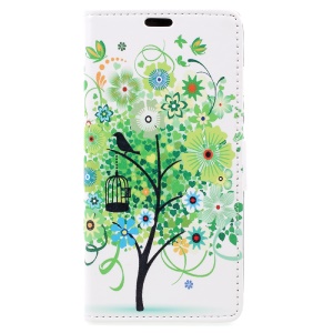 Patterned Wallet Stand Leather Cover for Xiaomi Redmi Note 4 - Green Tree & Bird Cage