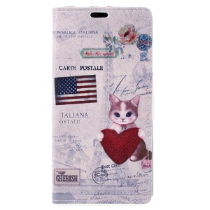 Patterned Wallet Leather Protective Case for Xiaomi Redmi Note 4 - Cat and American Flag