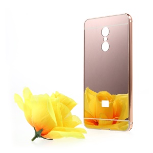 Slide-on Mirror-like PC Back Case with Metal Bumper Rim for Xiaomi Redmi Note 4X - Rose