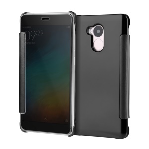 Mirror Plating Smart Window Mobile Case (PC + PU Leather) for Xiaomi Redmi 4 Prime/Pro - Black