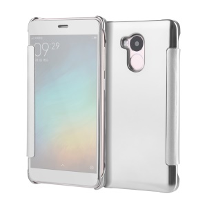 Mirror Plating Smart View Flip Phone Cover (PC + PU Leather) for Xiaomi Redmi 4 Prime/Pro - Silver