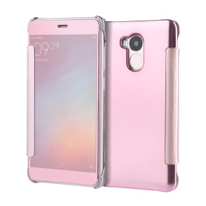 Smart Window Mirror Plated Mobile Phone Case (PC + PU Leather) for Xiaomi Redmi 4 Prime/Pro - Rose Gold