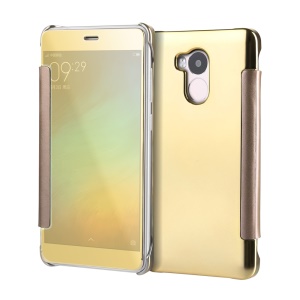 Smart Flip View Mirror Plated Mobile Casing (PC + PU Leather) for Xiaomi Redmi 4 Prime/Pro - Gold