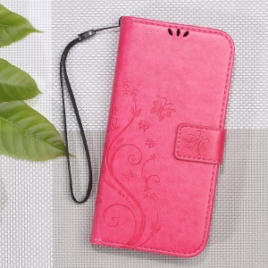$1.83 Imprinted Butterfly Flower Wallet Leather Phone Case with Stand for Meizu U20 - Rose#918754