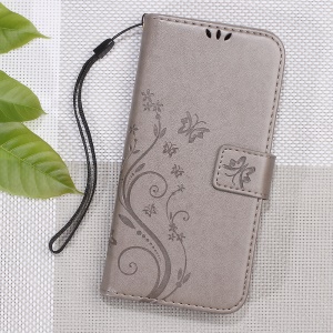 $2.04 Butterfly Flower Imprinted Leather Wallet Phone Case for Samsung Galaxy J2 Prime/Grand Prime Plus/Prime (2016) - Grey#901593