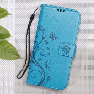 $2.04 Butterfly Flower Imprinted Leather Wallet Case Stand for Samsung Galaxy J2 Prime/Grand Prime Plus/Prime (2016) - Cyan#901513