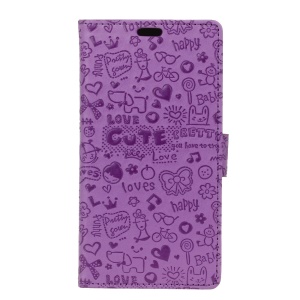 the same price Cartoon Graffiti Leather Wallet Flip Cover Mobile Accessory for Asus Zenfone Go ZB500KL - Purple#885188