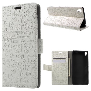 the same price Cartoon Graffiti Leather Wallet Case for Sony Xperia XA/Dual - White#449147