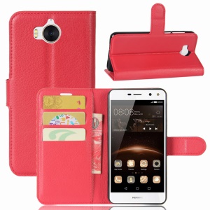 the same price Lychee Skin Wallet Leather Cover Case for Huawei Y5 (2017) - Red#925390