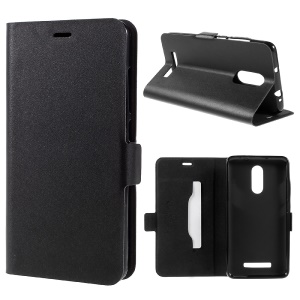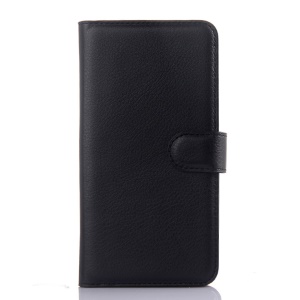 Litchi Skin Leather Wallet Case for Xiaomi Redmi Note 2 - Black