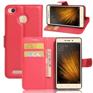 Lychee Skin Wallet Leather Protective Case for Xiaomi Redmi 3x - Red