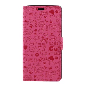 Cartoon Graffiti PU Leather Case Wallet for Xiaomi Redmi Note 4 - Rose