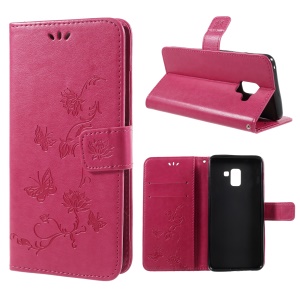$2.04 Imprint Butterfly Flower Leather Wallet Stand Phone Case for Samsung Galaxy A8 Plus (2018) - Rose#1207582