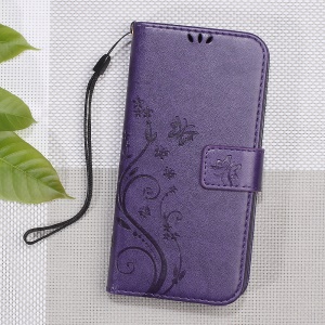 $1.28 Imprint Butterfly Flower Wallet Leather Mobile Phone Case for LG X Power K220 K220DS - Purple#912014