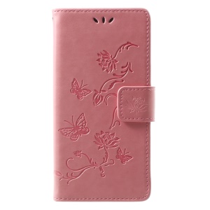 $1.10 Imprint Butterfly and Flower Leather Wallet Phone Case for Huawei Y6 Pro / Enjoy 5 - Red#920126