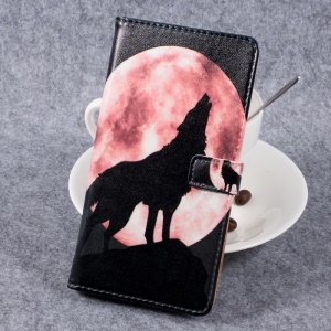 Pattern Printing Wallet Phone Case Leather Cover Shell for Xiaomi Redmi Note 4X - Wolf and Moon