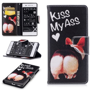 $2.39 Pattern Printing Magnetic Leather Wallet Phone Casing with Stand for Sony Xperia XA1 - Kiss My Ass#1163127