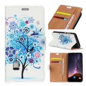 the same price Pattern Printing Leather Card Holder Stand Mobile Casing for Huawei Mate 10 - Blue Tree#1191612
