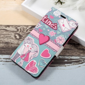 the same price Patterned Leather Stand Wallet Flip Shell for Wiko Tommy 2 Plus - Girl Holding Heart Balloon#1203373